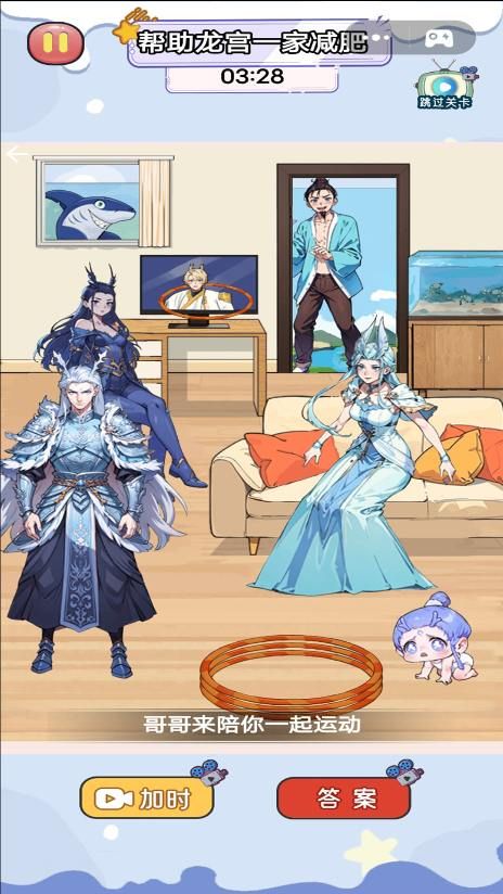 游戏以帮助神话角色解决现代生活难题为核心创意,将哪吒和敖丙一家的减肥故事演绎得妙趣横生。每个关卡都经过精心设计,需要玩家运用智慧合理规划减肥方案。游戏提供了数十种创意道具,从智能跑步机到魔法蔬菜,每件道具都有独特的使用效果。看着角色们通过你的帮助逐渐瘦身,不仅会收获满满的成就感,还能欣赏到角色造型的趣味变化。整个游戏过程轻松解压,适合各个年龄段的玩家体验。