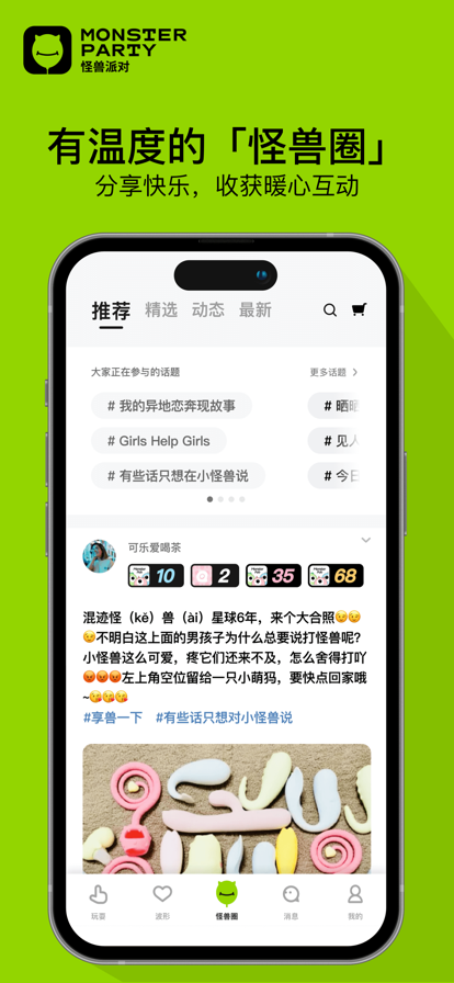 monsterparty派对安卓版是一款专为异地恋情侣和好友设计的趣味互动应用,现已正式上线分享给大家!这款应用不仅功能丰富多样,还拥有琳琅满目的商品选择,深受广大用户喜爱。无论你是想寻找情感寄托,还是希望与远方的TA保持亲密互动,monsterparty派对都能满足你的需求。快来加入007本栏目,与众多小伙伴一起体验这款神奇的应用吧!