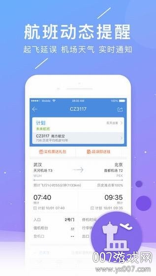 【航班延误提醒】依托空管总局权威数据,实时推送航班动态变化,延误信息第一时间通知,让您随时掌握最新情况。【手机在线值机】创新推出手机值机功能,无需排队即可轻松选座,让您提前锁定心仪座位,享受更舒适的飞行体验。【机票购买】与携程机票平台深度合作,提供安全可靠的购票渠道,让您享受一站式机票预订服务。