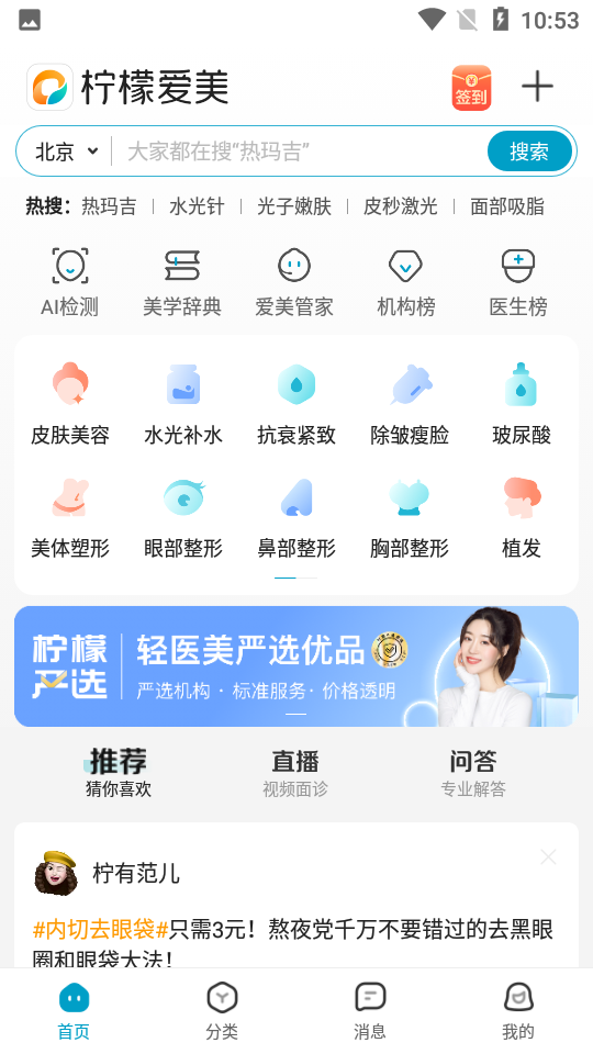 柠檬爱美app是一款专业医美服务平台,致力于为用户提供安全、便捷的美容体验。平台汇聚了皮肤美容、水光补水、塑形等丰富项目,更有专业医美小贴士帮助改善肤质。医疗美容分类清晰全面,用户可根据个人需求快速匹配适合的服务。平台严格筛选合作机构,确保每项服务都安全可靠,让变美之旅更放心。无论是日常护肤还是专业医美,这里都能满足你的需求。