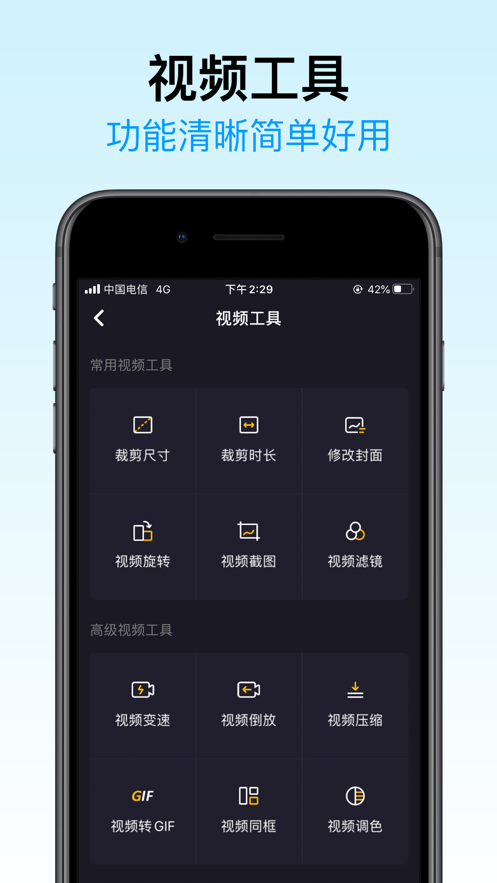 【视频工具】提供多达17种视频剪辑功能,界面清晰简洁,零基础用户也能轻松制作专业视频。