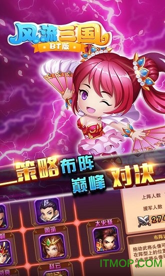 风流三国手游是一款集策略、养成、格斗于一体的超梦幻三国题材手游。游戏以经典三国历史为背景,完美融合了角色收集、技能释放、武将养成等丰富玩法,同时为玩家准备了海量元宝银币和超值福利。无论是喜欢策略布局还是热血格斗的玩家,都能在这里找到属于自己的乐趣。现在就前往IT猫扑下载体验,开启你的三国霸业之旅吧!