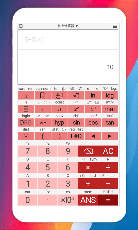 该计算器具有的各项功能和诸多更高级的功能,包括复数和矩阵。支持复数运算和矩阵计算,为工程和科研人员提供专业级工具。