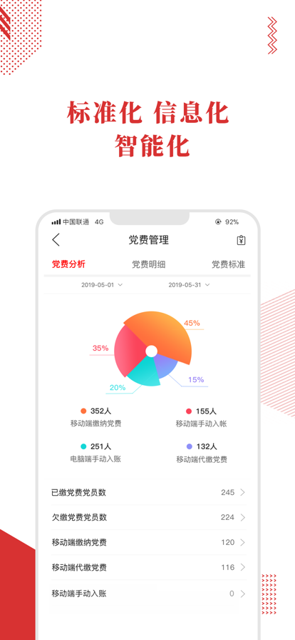 平台会实时更新发布最新的党建资讯和政策解读,用户足不出户就能通过手机全面了解党建动态。平台采用云端部署模式,无需额外硬件投入和维护人员配置,大大降低了使用成本。同时,平台支持个性化定制功能,可以根据不同单位的需求打造专属的移动政务平台。用户还可以通过平台参与在线学习、组织活动、缴纳党费等多项党务工作,真正实现党务工作移动化、智能化。