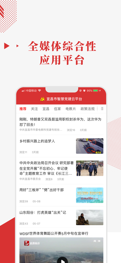 宜昌市智慧党建云平台是一款基于移动互联网技术的创新型党建服务平台。该平台以智能手机、电脑等网络终端为载体,深度融合大数据分析、云计算等前沿技术,构建了一个功能完善、操作便捷的数字化党建生态系统。平台以党建工作标准化、信息化、智能化为核心建设理念,通过全媒体交互方式,为推进宜昌全市基层党组织建设提供强有力的技术支撑,助力实现基层党组织全面进步、全面过硬的发展目标。