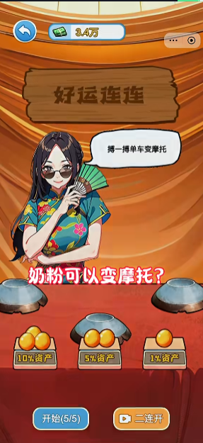 选择资产50%,二连开,每次获得百万,高风险高回报的投资方式