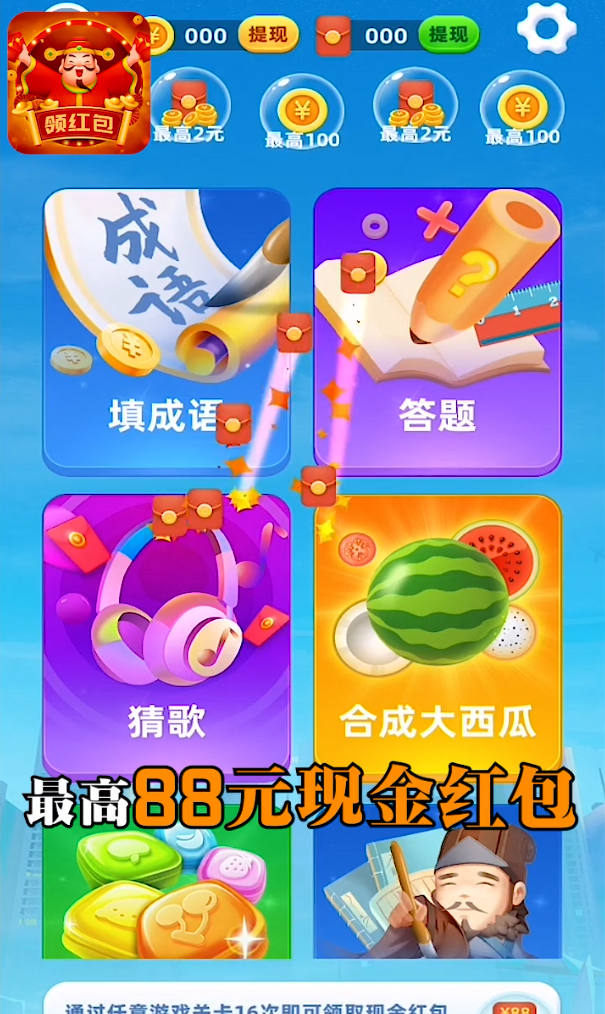 游戏玩法丰富多样,涵盖猜成语、消消乐、答题闯关等多种类型,满足不同玩家的喜好。所有游戏都经过精心设计,既有趣味性又具挑战性,让你在轻松愉快的氛围中收获红包奖励。系统还会根据节假日推出特别活动,红包奖励翻倍,惊喜不断。