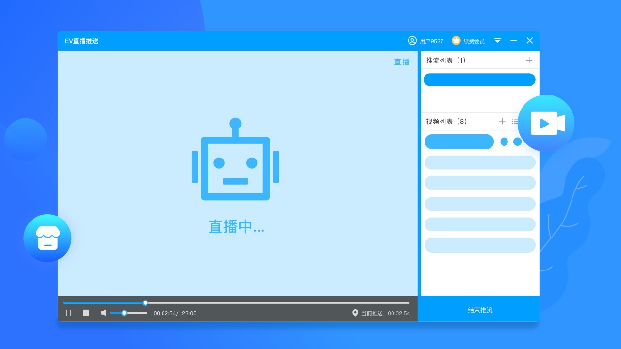 EV直播助手提供专业的节目单管理功能,支持对视频列表进行个性化编排设置,让您的直播内容更有条理;智能循环播放模式可以解放您的双手,实现24小时不间断直播,特别适合需要长时间直播的用户;突破传统直播的时间限制,无论白天黑夜,只要您有需求,随时都能开启高质量直播推流。