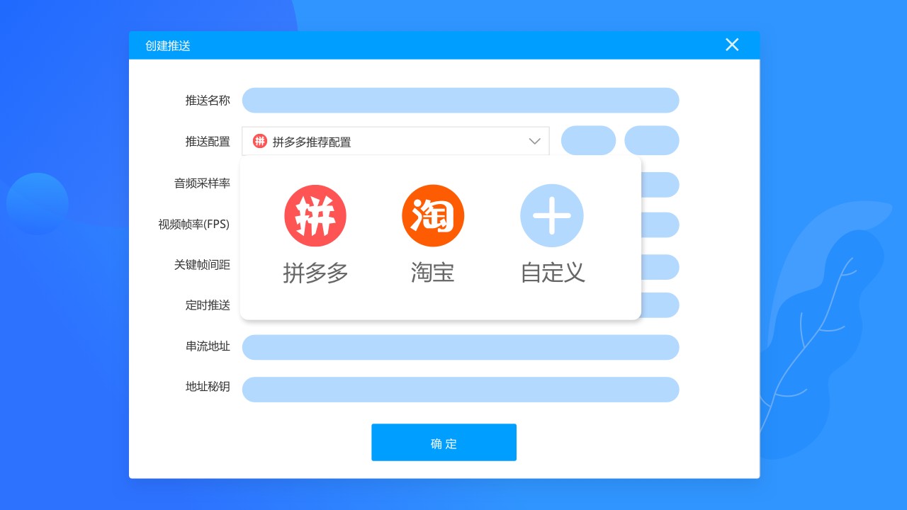 软件内置智能定时系统,可精确设置推流时间,到点自动开启或结束直播,完全实现无人值守操作;强大的视频适配功能,支持自定义截取符合各平台规范的视频尺寸,确保您的直播画面完美适配不同平台要求;极简的操作界面设计,让复杂的直播推流变得简单直观,真正实现一键推送的便捷体验。