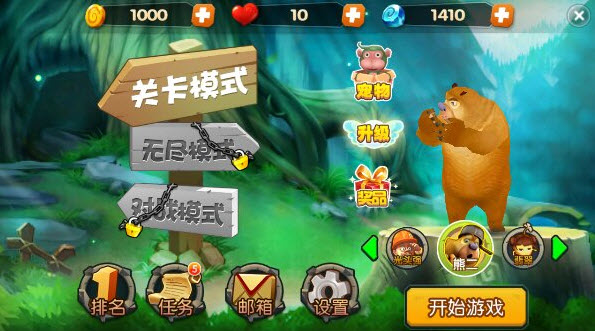 游戏采用次世代引擎打造,画质细腻逼真,光影效果出色。玩家可以选择熊大、熊二等不同角色进行游戏,每个角色都配有专属的宠物伙伴。这些可爱的宠物不仅外形呆萌,还能在关键时刻提供特殊技能帮助。