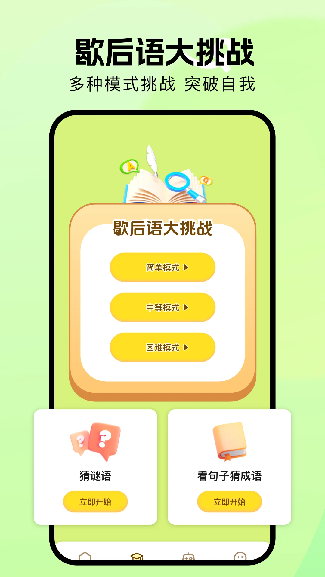 《开心趣味挑战》是一款专为全年龄段用户设计的休闲益智游戏,融合了多种趣味玩法与轻松挑战模式,旨在为玩家带来欢乐与智慧的碰撞。无论是孩子、成年人还是老年人,都能在游戏中找到适合自己的乐趣。游戏以简单易上手为核心,同时兼顾策略性与创意性,让玩家在闲暇时光中既能放松心情,又能锻炼脑力。丰富的关卡设计和多样化的互动模式,让每一天的挑战都充满新鲜感,快来加入这场益智与趣味并存的冒险吧!
