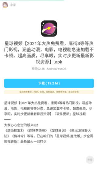 小星软件库最新版是一款功能强大且资源丰富的软件应用平台,为用户提供了海量的优质软件资源。无论是影视爱好者、漫画迷还是小说阅读达人,都能在这里找到心仪的应用。平台实时更新各类资源,确保用户随时获取最新内容,满足不同场景下的使用需求。