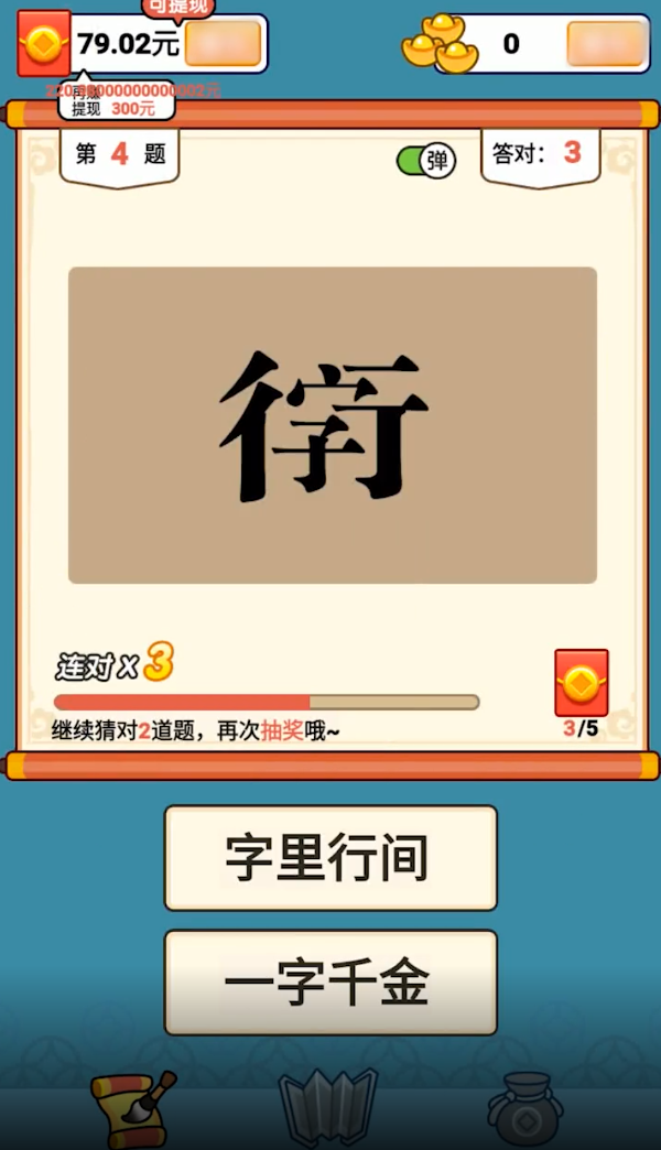 成语黄金城红包版采用"知识变现"的创新模式,玩家通过回答成语题目即可获得现金奖励,答对的题目越多,赚取的收益就越高。游戏设置了超低的提现门槛,仅需累积0.3元即可申请提现,而且提现过程简单快捷,真正做到秒到账。游戏界面清新简洁,操作简单易上手,让您在轻松愉快的氛围中既能学习成语知识,又能赚取额外收入。