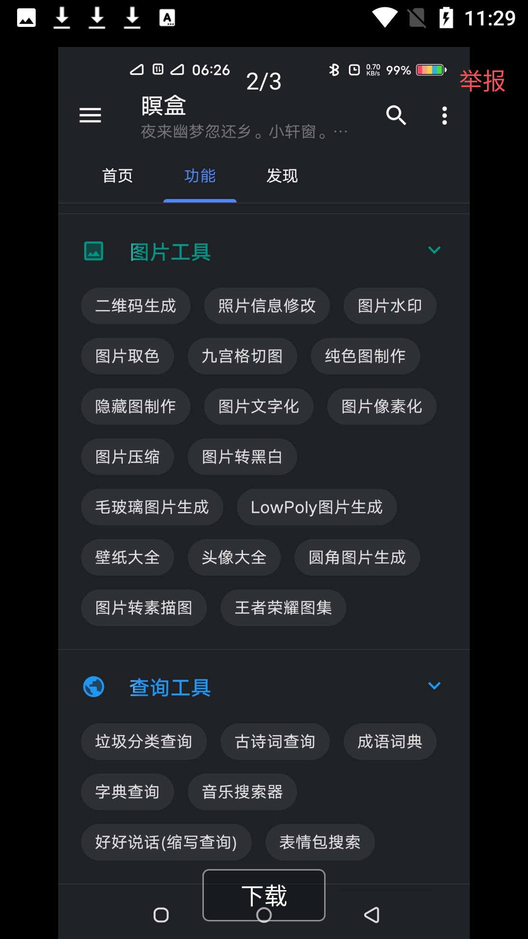 瞑盒app最大的特色在于它聚合了近百种日常实用功能,打造出一个超简洁的全能工具箱。软件专注于功能便捷性和实用性,帮助用户高效完成各项工作任务。告别手机里安装多个单一功能应用的繁琐,通过瞑盒app这一个应用就能轻松搞定所有需求。无论是学习、工作还是生活场景,这款软件都能提供恰到好处的工具支持,让您的数字生活更加简单高效。