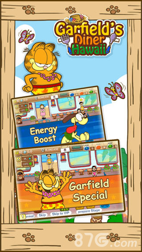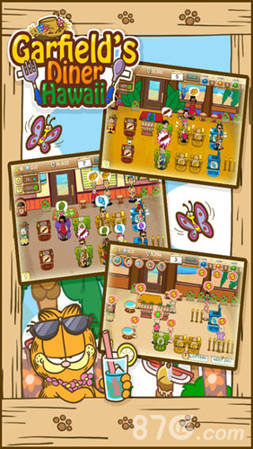 游戏的故事背景设定在风景如画的夏威夷群岛,这里阳光明媚,海风轻拂,处处洋溢着热带风情。玩家将在这里经营一家独具特色的海滨餐厅,为来自世界各地的游客提供美食服务。经典卡通角色加菲猫作为游戏主角,将带领它的朋友们共同参与餐厅的日常运营。游戏设置了丰富的挑战任务和成就系统,包括接待特殊顾客、完成限时订单等,完成任务可以获得丰厚的奖励。玩家还可以通过社交系统结识其他餐厅老板,交流经营心得。