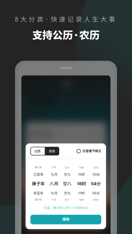 多种时间视图随心切换:软件支持公历、农历和节假日等多种时间模式,满足不同用户的需求,让日程管理更加灵活便捷。