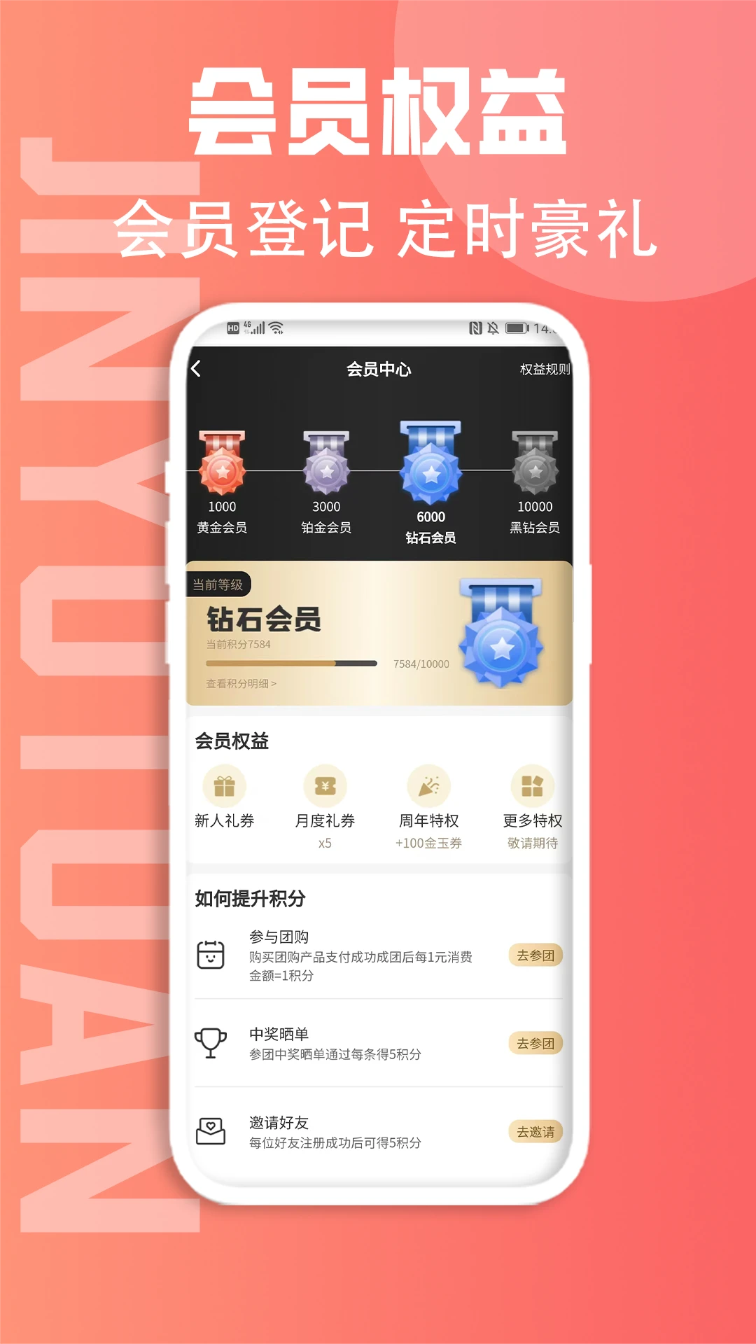 专属会员权益:金玉团会员可享受免费抽奖、高额优惠券等专属福利,提升购物体验和性价比。