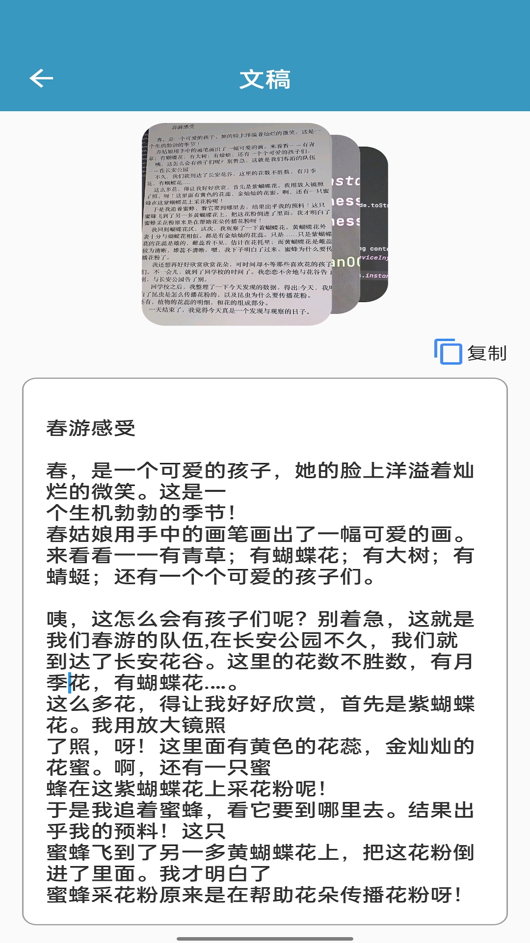 支持各类文稿的快速扫描与识别,包括合同、报告、论文等常见文档格式。先进的OCR技术能准确提取文字内容,并保持原有排版格式不变。扫描后的文稿可自动归类到指定文件夹,方便后续查找和使用。同时支持多页文档连续扫描,大幅提升批量处理效率。