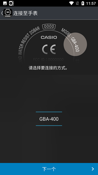 在应用程序中选择您的手表具体型号。系统会自动识别兼容的G-SHOCK手表型号,并提供相应的功能支持列表。