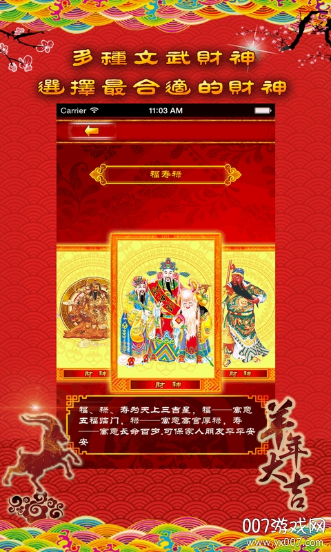 请财神app是一款专为现代人设计的财神供奉应用,让您足不出户即可一步到位请到财神。通过每日虔诚祭拜,您的财运将逐渐开启,生活事业更加顺遂。应用内提供多种财神形象供您选择,满足不同用户的需求。无论是文财神还是武财神,都能为您带来独特的财运加持,助您在财富之路上稳步前行。