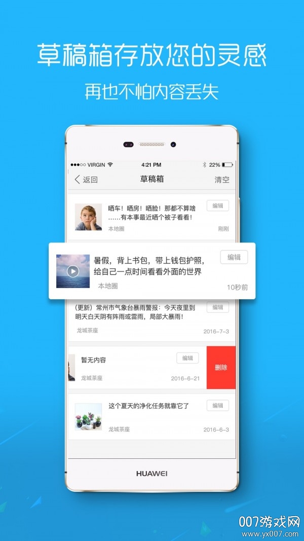 平台的消息提醒功能确保您不会错过任何重要通知;智能草稿箱自动保存未完成内容,让创作灵感永不丢失;支持QQ、微博等多种快捷登录方式,省去繁琐注册流程;简易视频拍摄功能让您随时记录生活精彩瞬间,与同城好友分享快乐时光。