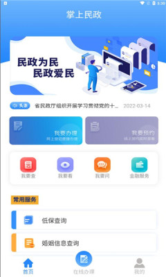 预约:婚姻登记预约、低保申请预约、社会救助核查预约,支持智能提醒功能;
