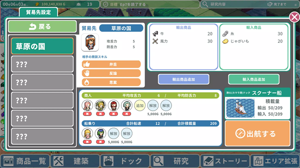 罗塔岛航海贸易记中的居民系统设计得非常细致,居民分为农民、商人和水手三种主要职业,每种职业都有独特的技能和属性。商人在商业谈判中发挥着关键作用,他们的谈判技巧直接影响交易价格。玩家可以在城镇周围建设各种生产设施,制造具有地方特色的出口商品。游戏采用生动的像素风格绘制居民,他们会在城镇中自由活动,还会自言自语,为游戏增添了许多生活气息。贸易系统是游戏的核心玩法,玩家需要研究市场行情,把握最佳买卖时机。不同类型的船只具有不同的载货能力和航行特性,玩家需要根据贸易需求合理配置船队。总的来说,罗塔岛航海贸易记是一款内容丰富、玩法多样的模拟经营游戏,无论是画面表现还是游戏性都达到了很高的水准。
