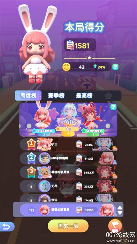 排位对战是游戏中的竞技玩法,需要玩家等级达到4级才能解锁。这个模式采用实时匹配机制,玩家将与其他玩家同场竞技,在相同的跑酷场景中展开激烈角逐。玩家需要充分发挥自己的跑酷技巧,在躲避障碍物的同时,还要注意其他玩家的动向,努力成为最后留在场上的胜利者。排位赛的挑战性极高,但相应的奖励也十分丰厚,是检验玩家实力的最佳舞台。
