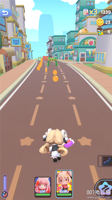 路演关卡是游戏的核心玩法之一,特别适合新手玩家入门。在这个模式中,玩家需要先招募角色并进行基础能力培养,然后带领她们参与街头表演。跑酷玩法是路演关卡的主要形式,玩家需要选择不同的表演场景,在角色自动奔跑的过程中,通过左右滑动来躲避障碍物。每个关卡都有时间限制,玩家需要在限定时间内保持角色不撞到障碍物。随着游戏进程的推进,关卡难度会逐渐提升,玩家还会遇到特殊的boss挑战。在跑酷过程中收集的金币可以用来释放技能,帮助击败boss。成功通关后,不仅能获得星星奖励,还能提升角色等级,让她们在后续的表演中有更出色的表现。