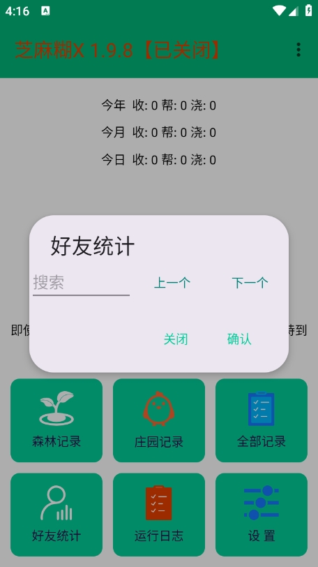 芝麻糊x内置的智能好友统计系统可以帮助用户全面了解社交互动情况。在应用首页点击"好友统计"选项,系统将自动分析并展示与好友间的能量互动数据。用户可以通过名称搜索快速定位特定好友,查看详细的互动记录和能量交换情况。这项功能不仅让社交互动一目了然,还能帮助用户优化能量收取策略,最大化每日收益。