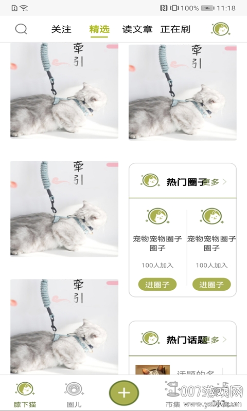 膝下猫云吸猫平台是一个专为猫咪爱好者打造的温馨社区,这里汇聚了全球爱猫人士的精彩分享。无论是萌态可掬的小奶猫,还是高冷优雅的猫大叔,你都能在这里找到心仪的内容。平台提供海量猫咪照片、视频和养猫知识文章,更有众多博主实时更新猫咪日常。用户可以自由关注喜欢的账号,也能随时分享自己的养猫趣事,与志同道合的铲屎官们交流互动,打造专属的云吸猫乐园。