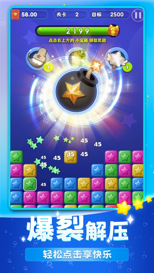 -两个以上相连的相同颜色的星星即可消灭它,简单易上手的规则让玩家轻松入门。