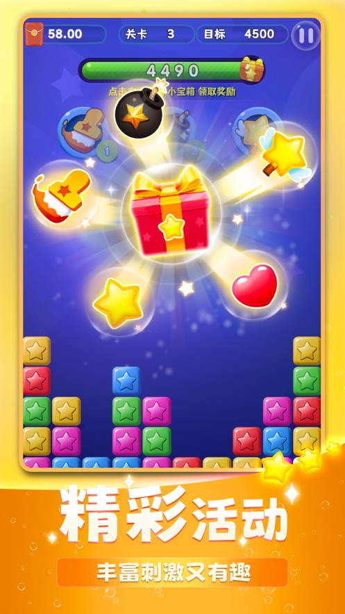这是一款充满乐趣的消除类手游,不仅玩法丰富多样,还能让玩家在享受游戏的同时领取红包奖励。通过消除相同颜色的星星,玩家可以积累分数,分数越高,获得的红包金额就越大。游戏画面清新亮丽,操作简单易上手,适合各个年龄段的玩家。无论是单人挑战还是多人对战,都能带来不同的乐趣体验。快来加入这场消除与红包的双重盛宴吧!