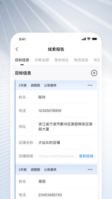 线索报告是优盾知识产权的重要特色功能。用户可以通过该功能提交侵权行为的详细信息和证据,包括目标信息、涉案金额、落地地址、物流信息、样品鉴定等。所有提交的线索报告都会被系统完整记录,并标注信息来源、添加人和添加时间,方便后续追踪处理。这一功能大大提高了知识产权维权的效率和准确性。