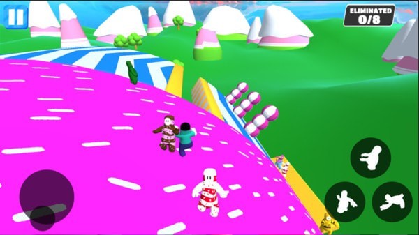 在紧张刺激的竞速环节中,玩家需要灵活操控角色穿越各种精心设计的障碍物赛道。这些障碍不仅考验反应速度,更需要策略性地规划行进路线。率先到达终点的玩家将获得最高排名奖励和大量金币,这些奖励可以用来解锁更多个性化装扮。游戏采用轻松有趣的闯关模式,每个关卡都独具特色,从旋转平台到移动地板,再到突然出现的陷阱机关,保证让你每一局都有新鲜体验。此外,游戏还定期更新特殊主题赛季,带来全新的比赛项目和限定服装,让玩家始终保持高涨的游戏热情。