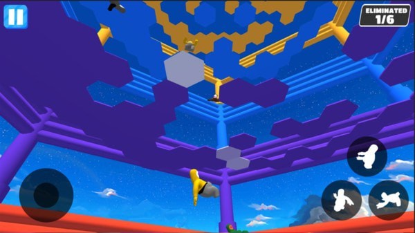 游戏的核心玩法在于精准操作与战术决策的完美结合。你需要时刻保持警惕,因为赛场上每个对手都可能成为你的威胁。通过熟练的跳跃、抓取和闪避动作,你可以在混战中占据优势。游戏提供了多种风格迥异的竞技场景,从高空平台到水上赛道,每个场景都带来独特的挑战。道具系统为比赛增添了更多变数,比如加速鞋可以让你瞬间超越对手,而弹簧装置则能帮助你跨越巨大障碍。单人闯关模式则让你可以专注于磨练技术,逐步提升操作水平,为多人对战做好充分准备。