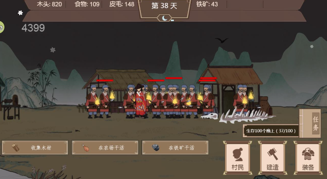游戏中的战斗系统颇具挑战性。建议初期不要设置太多守卫,等到天黑时再将村民全部转为守卫状态。怪物的血量通常比守卫高出两三倍,即使装备铁甲和盾牌也很难对付。有玩家反映在第13天晚上遇到三只高攻高血的怪物时难以招架。这时可以尝试挑战山阶副本,获取宝箱中的珍贵物品后立即撤退。如果实在打不过,可以尝试在怪物接近时重新开始游戏,这样虽然黑夜时间会继续流逝,但怪物会重新刷新,给你争取更多准备时间。