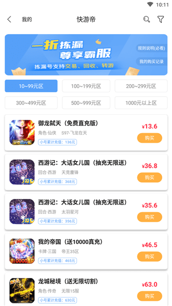 快游帝app是一款专为游戏爱好者打造的全能型游戏平台,它汇集了当下最热门的各类游戏资源,并保持实时更新,确保玩家能够第一时间体验到最新游戏内容。平台对游戏进行了细致的分类整理,无论是角色扮演、竞技对战还是休闲益智类游戏,都能快速找到。此外,快游帝还为玩家准备了丰富的游戏福利,包括新手礼包、限时特惠等,让游戏体验更加畅快。更值得一提的是,平台提供专业的线上账号交易服务,玩家可以在这里购买到各种稀有游戏账号,支持多种热门游戏的账号交易,每个账号都有详细的资料展示,交易安全有保障。