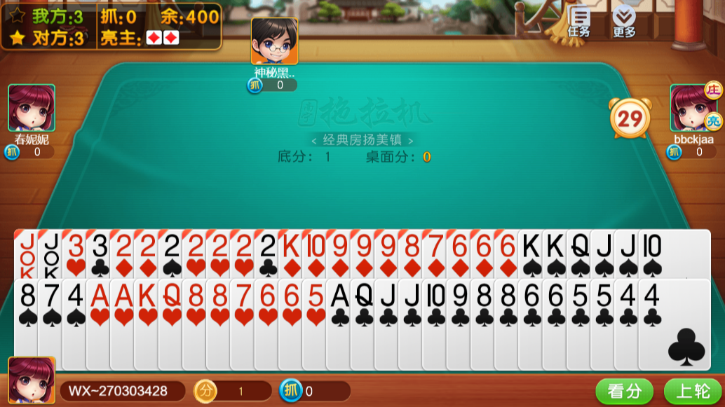 值得一提的是,在发牌过程中,玩家若抓到当前级牌,可以选择该级牌的花色作为主牌。这种动态的主牌确定方式,让每局游戏都充满新鲜感,考验玩家的临场应变能力。