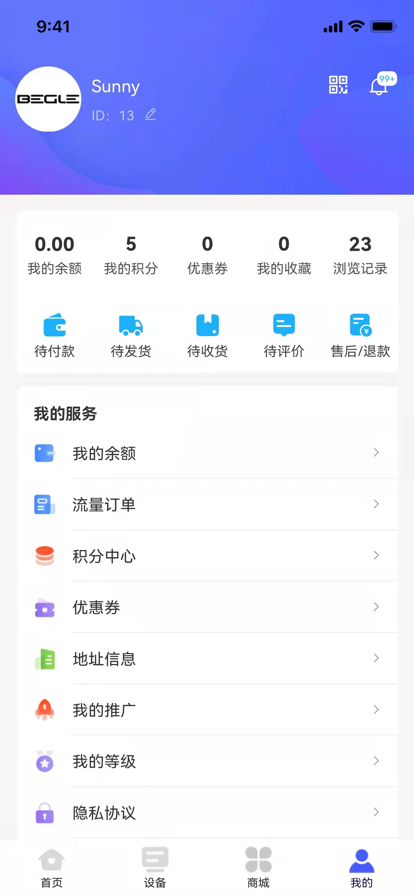 表鸽集成了账户管理、积分商城、订单查询等实用功能,打造全方位的智能服务平台。通过先进的物联网技术,让设备互联更加简单高效,用户可根据个人需求自由定制专属服务套餐。作为一站式通信服务平台,表鸽整合了产品销售、设备管理、流量查询充值、客户服务等核心功能,为用户提供便捷高效的使用体验。