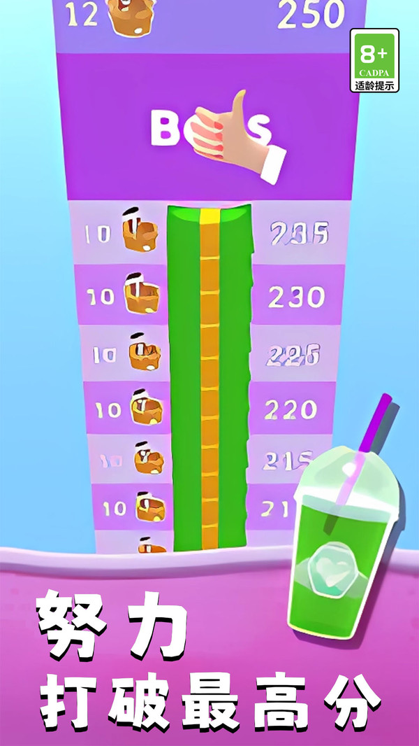 闯关赢取奖励:完成每日挑战或连续高评分通关可获得金币与稀有装饰品,提升整体进度并丰富收藏乐趣。游戏设有成就系统和排行榜,激励玩家不断突破自我记录。