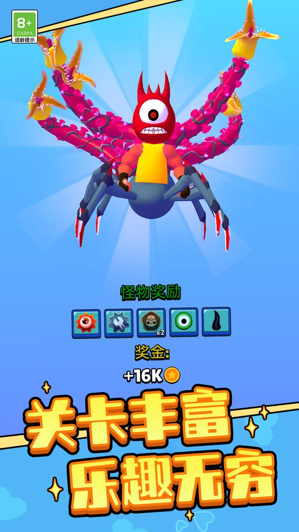 以吞噬为核心主题,简单粗暴的玩法,寻找你的目标,随时可以加入竞技当中。游戏采用即时匹配机制,让玩家可以快速投入战斗,享受随时随地的吞噬乐趣。无数的任务与挑战,从最基础的开始,不断的累积经验,变得愈加的厉害。随着等级提升,玩家将解锁更多高级地图和特殊模式。击败怪物能获得奖金等奖励,不断挑战更强大的对手,提升自己的实力。游戏还设有排行榜系统,让玩家可以与其他高手一较高下。