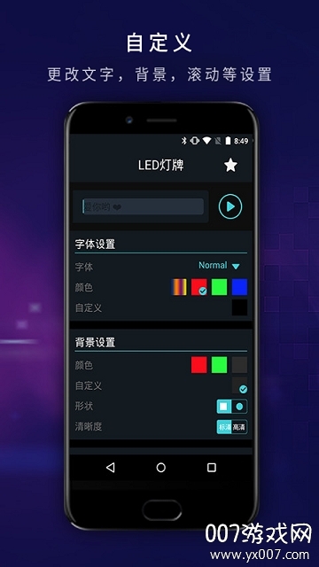 LED弹幕显示屏去广告版是一款极具创意的手机屏幕互动工具,它能将你的手机瞬间变身高清LED滚动字幕板。无论是演唱会应援、生日祝福、比赛助威还是浪漫表白,只需输入文字就能生成炫酷的动态弹幕。软件支持多行显示、字体颜色调节和背景自定义,让你的每句话都能成为全场焦点。独特的闪光特效和流畅的滚动动画,让信息传达更加生动有趣,彻底告别传统静态展示的单调乏味。