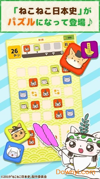 游戏采用关卡制设计,每个关卡都有独特的背景故事,让玩家在消除过程中了解日本历史典故。随着游戏进度推进,还能解锁更多可爱的猫咪角色和精美服饰。