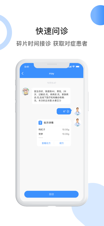 曙光妙医app为医生提供了便捷的问诊通道,支持随时为患者提供线上问诊服务;平台提供图文、语音、视频等多种问诊方式,确保问诊订单能够及时推送;医患之间可以通过平台进行即时沟通,特别是视频问诊功能实现了远程面诊的可能;电子处方功能配备多种处方模板,支持医生快速开具处方;所有电子处方都会自动保存,方便医生重复使用;医生还可以自定义个人服务设置,包括自主设定服务价格等。这些功能充分体现了曙光妙医app在互联网医疗领域的专业性和创新性。