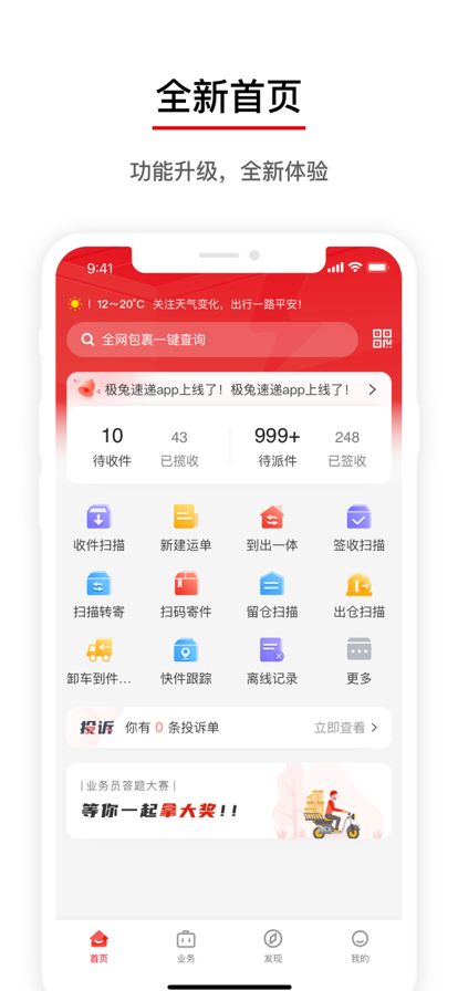 外场Pro是一款专为快递员打造的智能工具,旨在优化收件和派件流程,为客户提供更优质、便捷的服务。通过简洁直观的操作界面,快递员可以轻松完成订单接收、分配、追踪及电子面单生成等任务,无需繁琐步骤。此外,应用还提供详细的业绩统计和收入结算报表,帮助快递员实时掌握工作成果,优化工作节奏。无论是新手还是资深快递员,都能快速上手,享受高效的工作体验。