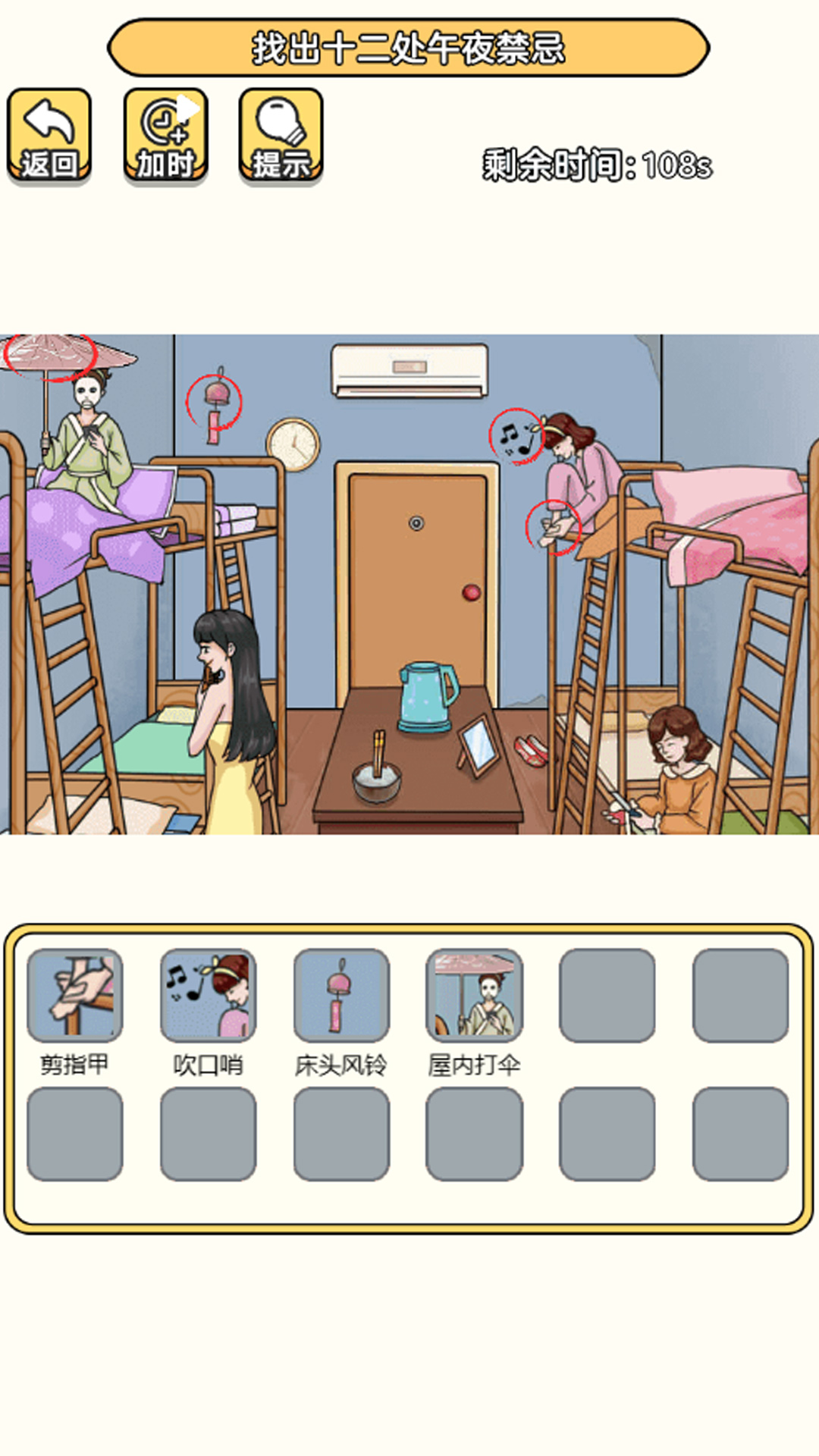 看着画面,进行思考和观察,找出不合理之处,开启更多的历险。游戏中的每一关都设计巧妙,隐藏着各种不易察觉的细节,玩家需要通过仔细观察和逻辑推理来发现这些差异,从而解锁更多有趣的关卡和挑战。