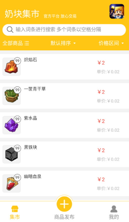 方便快捷的交易:用户可以通过奶块集市APP轻松地购买或出售虚拟物品。平台提供易用的界面,使用户能的够方便地浏览商品、进行交易,并实时了解市场动态。一键下单功能和移动支付支持让交易流程更加顺畅。