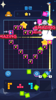 时间模式:在紧张的60秒倒计时中,您需要快速思考,尽可能多地消除星星来获得高分!