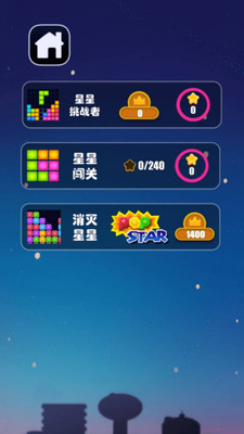 挑战模式:从天而降的星星会不断堆积,您需要及时消除它们,防止屏幕被填满!